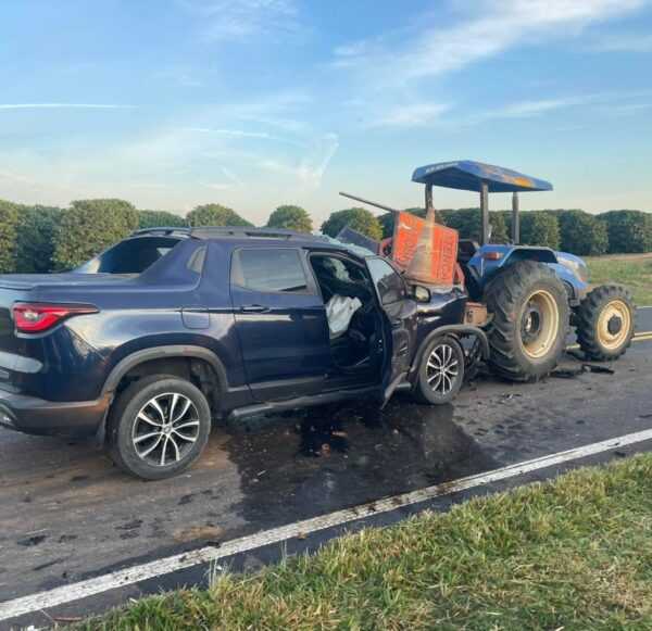 Fiat Toro atinge trator e fica destruído em Garça; condutor escapa ileso