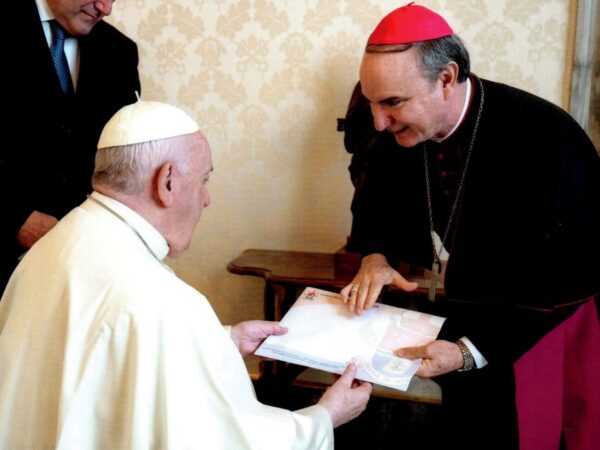 Dom Luiz Antonio Cipolini em encontro com papa Francisco em 2022 (Foto: Diocese de Marília)