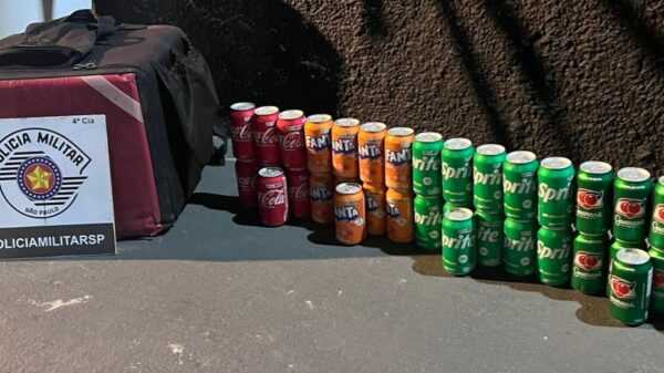 Ao verificarem o interior da mochila, os policiais encontraram 38 latas de refrigerante de diferentes marcas. Diante da situação, os militares realizaram buscas próximo e localizaram um trailer de lanches com a porta aberta na mesma avenida.